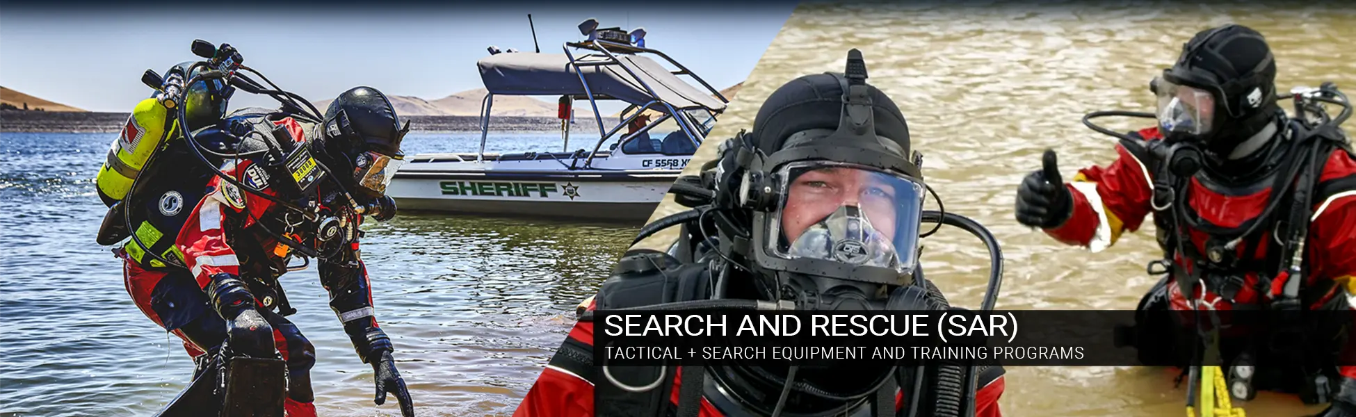 Search and rescue divers use tactical equipment like underwater sonar and metal detectors to locate submerged objects and victims. They also rely on search tools such as underwater lights and cameras for visibility in murky waters and underwater cutting tools to enable precise and efficient recovery operations.